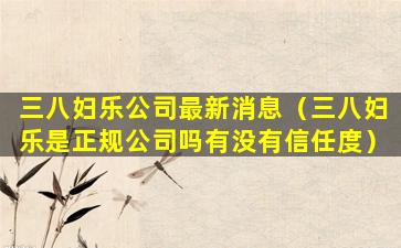 截至我的知识更新日期(2023年),关于“三八妇乐公司”的最新消息,我无法提供具体的信息,因为这可能是一个特定地区或特定领域的公司,且没有广泛的新闻报道或者公开的更新。如果这是一个真实存在的公司,建议您通过以下几种方式获取最新消息:
