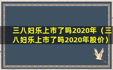 截至我的知识更新日期(2023年),关于“三八妇乐”是否在2020年上市的信息并不明确。如果“三八妇乐”是指某个特定的公司、产品或服务,那么可能需要查阅最新的市场资料或官方公告来获取准确的信息。