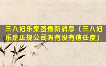 截至我的知识更新日期(2023年),关于三八妇乐集团的最新消息,我无法提供实时或最新的信息。三八妇乐集团是一家中国的企业,主要从事女性健康产品的研发、生产和销售。如果您需要了解该集团的最新动态,建议您直接访问三八妇乐集团的官方网站或关注其官方社交媒体账号,以获取最准确和最新的信息。同时,您也可以通过新闻媒体或行业资讯平台来了解相关报道。请注意,获取信息时务必确保来源的可靠性和准确性。