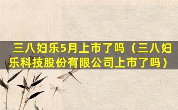 截至我的知识更新日期(2023年),关于“三八妇乐”是否在5月上市的信息并不明确。如果“三八妇乐”是一个产品或者服务,并且您想了解其上市情况,建议您直接查询该产品或服务的官方信息,或者通过新闻发布、公司公告等渠道获取最新消息。