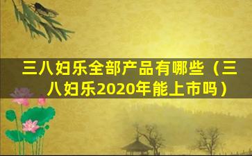 截至我的知识更新日期(2023年),关于“三八妇乐”是否在2020年上市的信息并不明确。如果“三八妇乐”是指某个特定的公司或产品,并且您想要了解其上市情况,建议您查阅最新的官方公告、新闻报道或金融市场信息。
