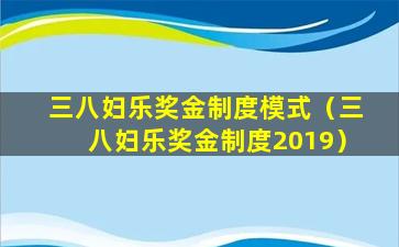 关于“三八妇乐奖金制度模式”,这可能是指某个特定公司或组织的奖金分配方式。由于这个名称并不是一个广为人知的术语,也没有提供足够的信息来确定其具体内容,因此无法提供详细的解释。