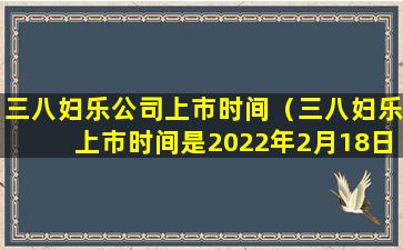 截至我的知识更新日期(2023年),关于“三八妇乐公司”上市的具体时间,我没有找到相关的信息。如果“三八妇乐公司”是一个特定的公司,并且您想要了解其上市时间,我建议您查阅最新的新闻报道、公司公告或者通过证券交易所的官方网站来获取最准确的信息。