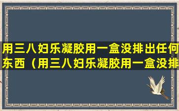 三八妇乐凝胶是一种用于女性私处护理的产品,其宣传的功效可能包括清洁、消炎、抑菌等。如果您使用了一盒三八妇乐凝胶但没有感觉到任何排出物,这可能是正常的,因为每个人的身体状况和反应都是不同的。