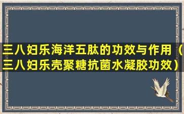 三八妇乐海洋五肽是一种保健品,它声称含有海洋生物提取的五种肽类成分,旨在帮助女性调节身体机能,改善健康状况。关于“三八妇乐海洋五肽”的具体功效与作用,目前没有权威的科学研究和证据支持。
