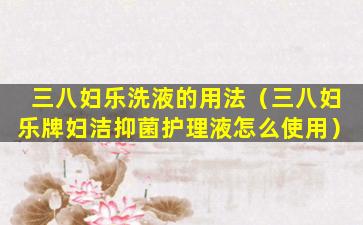 三八妇乐洗液是一种女性私处护理产品,主要用于清洁和护理女性私处,帮助维持私处的卫生和健康。使用方法通常如下: