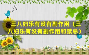 关于“三八妇乐”这一产品,由于我无法访问最新的数据库,无法提供确切的信息。通常,任何药物或保健品都可能存在副作用和禁忌,这取决于其成分、使用者的健康状况以及使用方式。