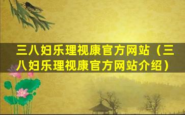 很抱歉,我无法提供关于“三八妇乐理视康官方网站”的具体信息,因为这可能是一个特定品牌或产品的网站,而我无法访问最新的互联网数据。如果您正在寻找某个特定品牌或产品的官方网站,我建议您直接在搜索引擎中输入品牌或产品名称,通常可以找到官方网站的链接。