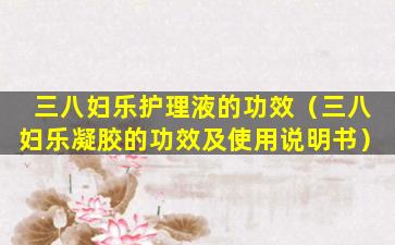 关于“三八妇乐凝胶”的功效及使用说明书,由于我无法访问最新的数据库,无法提供具体的产品信息。通常,这类产品可能是针对女性私密护理的凝胶,可能包含抗菌、消炎、保湿等成分,旨在帮助改善私密部位的健康状况。