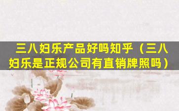 截至我的知识更新日期(2023年),三八妇乐(Sanba Fule)并不是一个广为人知的品牌,也没有明确的资料显示它是一家持有直销牌照的公司。在中国,直销牌照是由中国国家市场监督管理总局颁发的,允许企业通过直销方式销售产品。如果三八妇乐是一家在中国运营的公司,并且声称拥有直销牌照,那么它应该能够在国家市场监督管理总局的官方网站上查询到相关信息。
