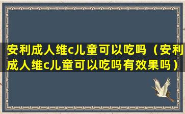 安利(Amway)是一家国际知名的直销公司,其产品包括营养补充品。安利的成人维生素C产品通常是为成人设计的,其剂量和配方可能不适合儿童。
