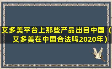 截至我的知识更新日期(2023年),艾多美(Amway)是一家全球知名的直销公司,其业务遍及多个国家和地区,包括中国。艾多美在中国是合法运营的,它遵循中国的法律法规,并且在中国有正式的注册和运营。