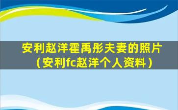 截至我所知的信息更新日期(2023年),赵洋并不是一个特别知名的公众人物,因此关于他的个人资料并不广泛公开。如果赵洋是安利公司(Amway)的FC(Field Consultant,即现场顾问),那么他可能是一位在安利公司工作的销售顾问,负责指导和培训安利的独立业务代表。