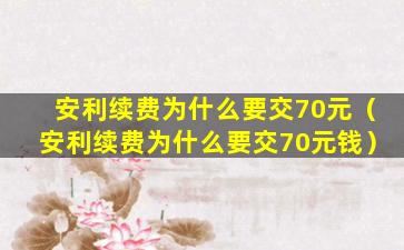 截至我的知识更新日期(2023年),关于“安利续费为什么要交70元”的具体情况,我无法提供确切的信息,因为这可能涉及到特定地区、特定时间或特定产品的政策。安利(Amway)是一家全球性的直销公司,其产品包括营养补充品、个人护理品、家居护理品等。
