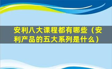 由于安利在全球范围内运营,并且不同地区可能有不同的培训体系,因此具体的“八大课程”可能会有所不同。通常,这些课程可能包括: