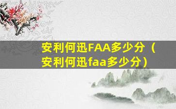 截至我所知的信息更新日期(2023年),关于“安利何迅FAA多少分”的具体信息并不明确。FAA分数通常指的是安利公司(Amway)内部的一个业绩评价体系,全称为“Founders Crown Ambassador”(创始人皇冠大使),这是安利公司给予其顶级销售代表的一种荣誉称号。FAA分数是衡量安利销售代表业绩的一个指标,分数越高,代表业绩越优秀。