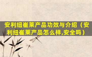 安利纽崔莱(Amway Nutrilite)是安利公司旗下的一个营养补充品品牌,其产品主要包括维生素、矿物质、植物提取物等营养补充剂。安利纽崔莱的产品在全球范围内都有销售,并且拥有一定的市场份额和知名度。