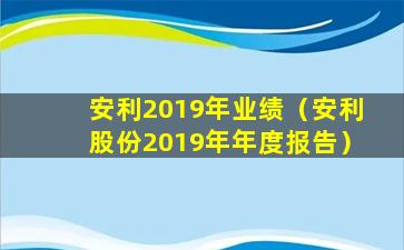 截至我所知的信息,安利(Amway)是一家全球性的直销公司,主要销售健康、美容和家居护理产品。安利的业绩通常会在每年的年度报告中公布,但由于我无法访问最新的数据,我无法提供2019年具体的业绩数字。