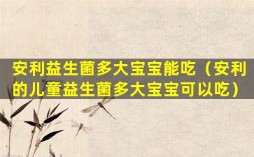 安利的儿童益生菌是专为儿童设计的益生菌补充产品,旨在帮助维护儿童的肠道健康。关于多大宝宝可以开始食用安利的儿童益生菌,通常建议遵循产品说明书或咨询儿科医生的建议。