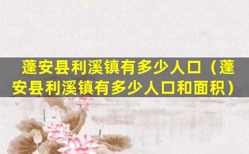 截至我所知的信息,蓬安县利溪镇的人口数据可能需要通过当地政府或官方统计数据来获取最准确的信息。通常,这些数据会在当地政府的官方网站、统计局发布的年度报告或者人口普查数据中公布。