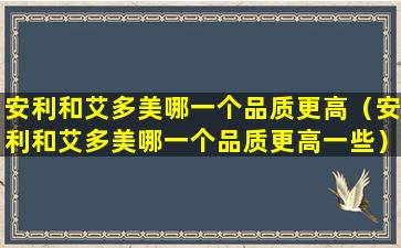 安利(Amway)和艾多美(Herbalife)都是国际知名的直销公司,它们分别提供多种健康、美容和个人护理产品。关于哪一个品牌的品质更高,这通常取决于个人的使用体验和偏好。