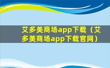 很抱歉,我无法提供关于“艾多美商场app”下载的具体信息,因为这可能是一个特定地区或特定公司的应用程序,而且我的知识截止日期是2023年4月,可能无法获取最新的应用程序信息。