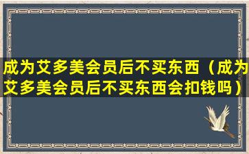 艾多美(Amway)是一家全球性的直销公司,其业务模式基于会员制。成为艾多美会员后,通常需要购买一定金额的产品或者支付一定的会员费用。但是,成为会员后如果不购买产品,一般情况下是不会被扣钱的。
