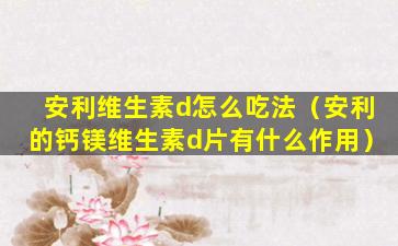安利(Amway)是一家全球知名的直销公司,其产品线包括多种维生素和补充剂。关于安利维生素D的吃法,通常需要遵循以下几个步骤: