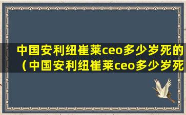 截至我的知识更新日期(2023年),关于“中国安利纽崔莱CEO”去世的具体信息并不明确,因为这可能是一个具体的事件,而我没有接收到相关的具体信息。安利(Amway)是一家全球性的直销公司,而纽崔莱(Nutrilite)是安利旗下的一个营养补充品品牌。如果有关某位CEO去世的消息,这通常会通过官方渠道或新闻媒体进行报道。