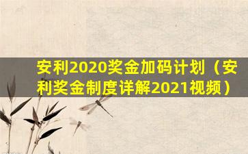 关于“安利2020奖金加码计划视频”,我们无法提供具体内容,因为这可能涉及到特定公司的内部政策和商业活动。我们建议您直接访问安利公司的官方网站或联系其官方客服获取最准确和官方的信息。