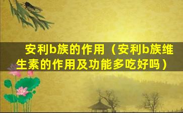 安利(Amway)是一家全球性的直销公司,提供多种健康、美容和家居产品。B族维生素是一组水溶性维生素,对人体健康至关重要。安利公司可能提供含有B族维生素的补充剂,这些补充剂通常被称为B族复合维生素。