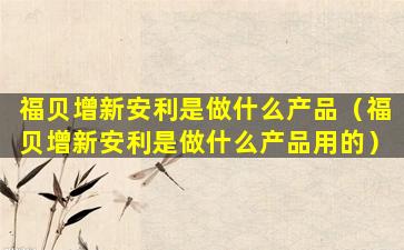 如果您是在询问“福贝增新安利”这个特定实体的产品,我建议您直接联系该公司或访问其官方网站以获取最准确的信息。如果这是一个新兴品牌或地区性品牌,可能需要通过其官方渠道来了解产品详情。