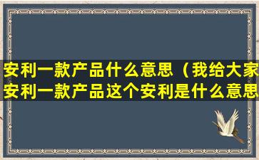 当你听到有人说“安利一款产品”,他们通常是在表达他们想要推荐或介绍一个他们认为很好、值得尝试的产品。这个表达通常带有积极、正面的含义,意味着推荐者对该产品有好的体验或评价,并希望其他人也能从中受益。