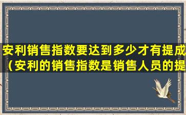 具体到“销售指数要达到多少才有提成”,这个数字并不是固定的,而是取决于安利公司的奖励计划和销售代表所处的市场。通常,销售代表需要达到一定的销售指数门槛才能开始获得业绩奖金。这个门槛可能会随着时间和地区的不同而变化。
