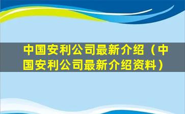 由于我的知识截止日期是2023年,我无法提供最新的介绍资料。如果您需要最新的信息,建议直接访问安利中国的官方网站或联系安利中国的客服获取最新、最准确的信息。官方网站通常会提供公司的最新动态、产品信息、市场活动以及如何加入安利成为直销商等相关信息。