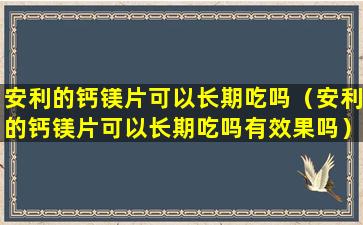 安利的钙镁片可以作为补充钙和镁的一种方式,但是否适合长期服用,以及如何服用,应根据个人情况和专业医疗建议来决定。