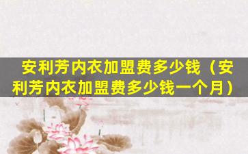 安利芳(Amway)是一家国际知名的直销公司,主要销售健康、美容、家居护理等产品,而不是内衣品牌。因此,如果您想了解的是安利芳的加盟费用,那么需要注意的是,安利芳并不提供传统意义上的“加盟”模式,而是采用直销模式,个人可以通过成为安利芳的独立业务代表来销售其产品。