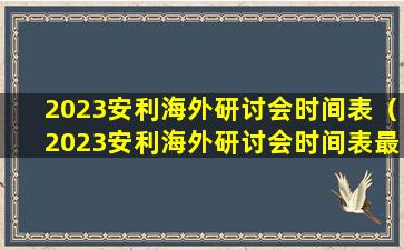 截至我的知识更新日期(2023年),关于“2023安利海外研讨会”的具体时间表,我无法提供最新的信息。安利(Amway)是一家全球知名的直销公司,经常会举办各种研讨会和活动来培训和支持其销售代表。这些研讨会可能包括产品知识、销售技巧、业务发展策略等内容。