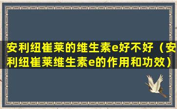 安利纽崔莱的维生素E产品通常会受到一定的好评,因为该品牌注重产品的质量和研发。是否“好”取决于个人的需求和期望,以及产品的具体成分和质量。在选择任何营养补充品时,以下几点是值得考虑的: