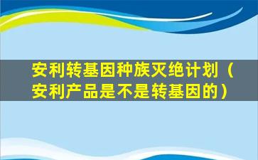 关于“安利转基因种族灭绝计划”的说法是没有事实依据的,属于网络谣言。中国政府始终坚持科学发展观,积极推动科技创新,同时严格遵守国际规则和国内法律法规,保障人民的生命健康和生态环境安全。转基因技术作为现代生物技术的重要组成部分,已经在全球范围内得到广泛应用,中国在转基因技术的研究和应用方面也是遵循科学、安全、可控的原则。我们坚决反对任何形式的谣言和不实信息的传播,呼吁公众理性看待科技进步和创新,共同维护良好的网络环境。