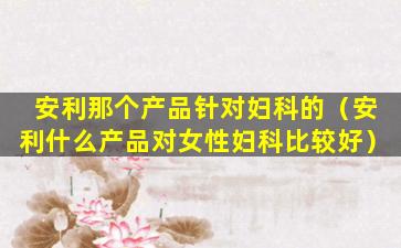 安利(Amway)是一家全球性的直销公司,提供多种健康、美容和个人护理产品。对于女性妇科健康,安利并没有专门针对妇科问题的产品,但是有一些产品可能对女性的整体健康和妇科健康有益。以下是一些可能对女性健康有益的安利产品: