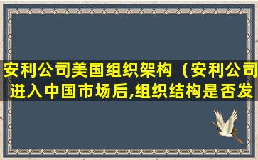 安利公司(Amway)是一家全球知名的直销公司,成立于1959年,总部位于美国密歇根州。安利公司自1995年进入中国市场以来,其组织结构确实经历了一些变化,以适应中国市场的特点和法律法规。