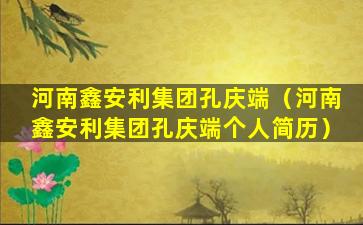 河南鑫安利集团是一家在中国河南省注册的企业,涉及的业务范围可能包括但不限于房地产开发、建筑工程、物业管理等。关于“孔庆端”这个名字,由于信息有限,无法确定其与河南鑫安利集团的具体关系。在商业领域,个人与企业之间的关系可能包括但不限于股东、高管、员工或合作伙伴等。