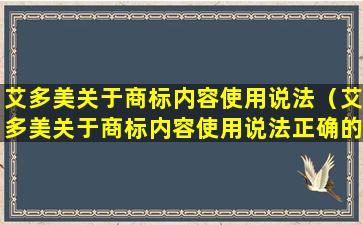艾多美(Amorepacific)是一家韩国的化妆品和美容产品公司,拥有多个知名品牌,如爱茉莉太平洋(Laneige)、悦诗风吟(Innisfree)等。在使用艾多美的商标内容时,应当遵守相关的商标法律法规,以下是一些正确的使用说法:
