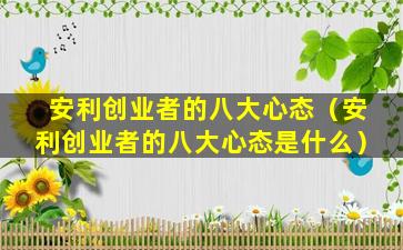 安利(Amway)是一家全球知名的直销公司,其创业者通常需要具备以下八大心态: