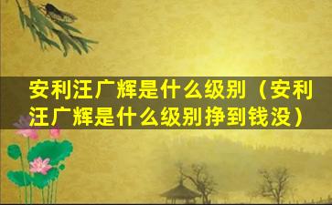 截至我的知识更新日期为止,没有关于“安利汪广辉”的具体信息。如果“安利”指的是安利公司(Amway),那么汪广辉可能是该公司的一名员工或者与该公司有关联的个人。由于缺乏具体信息,无法确定汪广辉在安利公司中的级别或职位。