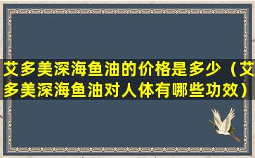 如果您想了解艾多美深海鱼油的价格,建议您可以通过以下几种方式获取: