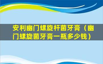 关于“安利幽门螺旋杆菌牙膏”,目前没有确切的科学证据表明存在专门针对幽门螺旋杆菌的牙膏。幽门螺旋杆菌是一种常见的胃部细菌,与胃炎、胃溃疡和胃癌等疾病有关。通常,治疗幽门螺旋杆菌感染需要使用抗生素和质子泵抑制剂等药物,而不是通过牙膏。