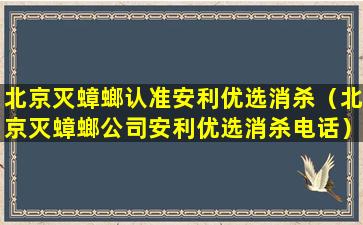 至于“安利优选消杀”,这可能是某个具体的服务品牌或公司,但由于信息不足,无法提供具体的评价或推荐。如果您在北京寻找除蟑服务,建议您可以通过网络搜索、咨询朋友或邻居的推荐,或者查看本地的消费者评价平台,如大众点评、百度地图等,来获取更多信息,并做出选择。