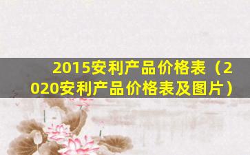 很抱歉,由于我的知识截止日期是2023年,我无法提供2015年的安利(Amway)产品价格表。安利是一家全球性的直销公司,其产品价格可能会随时间、地区和市场情况而变化。